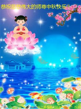 师尊您辛苦了!感谢师尊慈悲救度!感谢师尊慈悲保护!我们要做好三件事,和师父回家! 弟子跪拜师尊!合十! 浙江省金华市永康市大法弟子恭祝恩师中秋快乐!