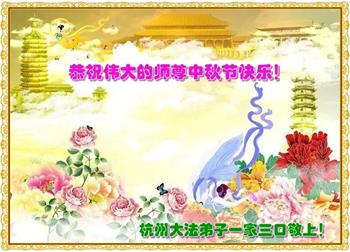 【明慧网二零一八年九月二十四日】 浙江省杭州大法弟子一家三口恭祝师尊中秋节愉快!