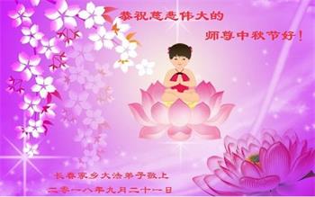 【明慧网二零一八年九月二十四日】 吉林省长春家乡一全家及代表狱中被非法关押的亲人大法弟子恭祝慈悲伟大的师尊中秋节快乐!