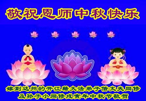 感谢师父的看护、点化,使我们在被迫害中更坚定、有提高、有升华,促使小孙也走進大法修炼中来。值此中秋传统佳节之际,我们敬祝恩师中秋节好!佳节快乐! 四川威远大法弟子恭祝师尊中秋快乐!