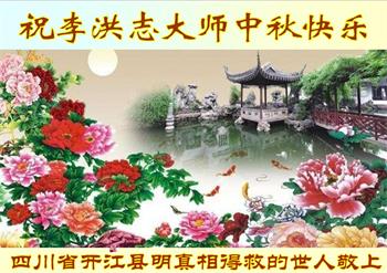 四川省达州市开江县明真相得救的世人祝李洪志大师中秋快乐!