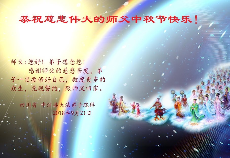 【明慧网二零一八年九月二十四日】 四川德阳大法弟子恭祝师父中秋好!