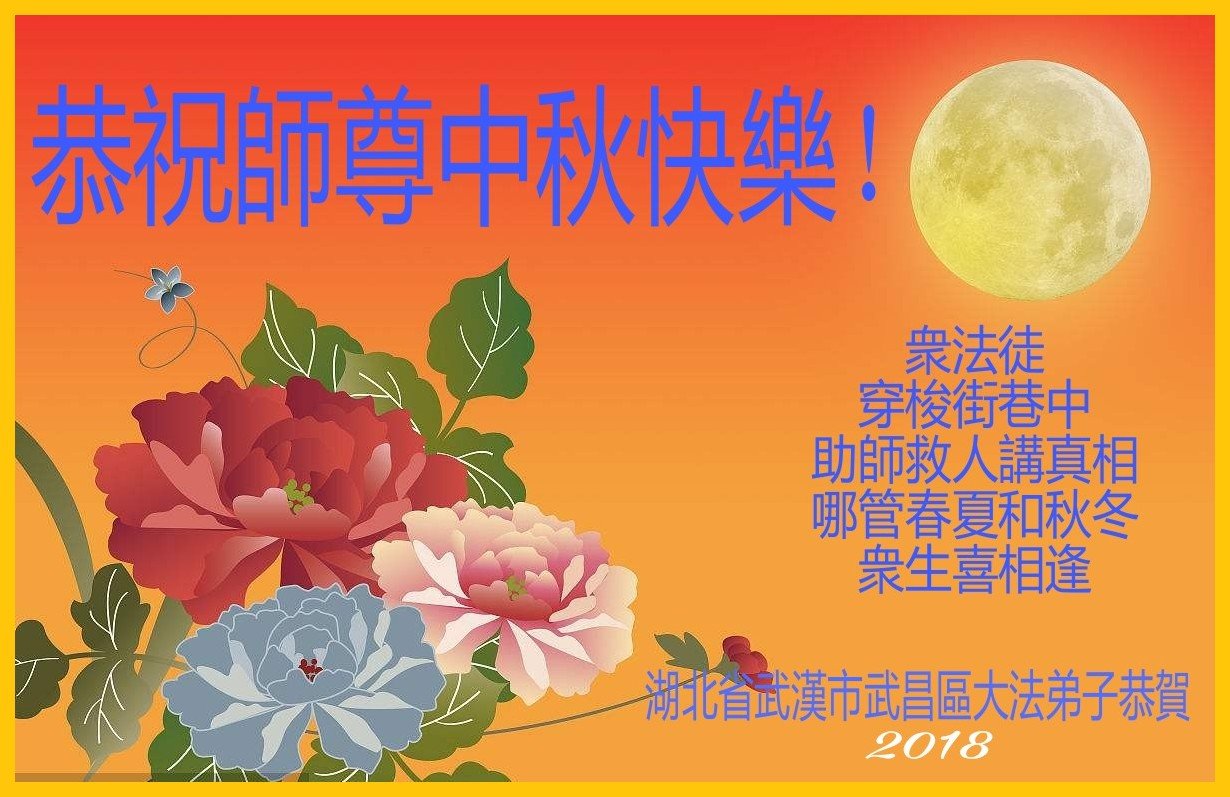 【明慧网二零一八年九月二十四日】 湖北省武汉市武昌区大法弟子恭祝师尊中秋快乐!