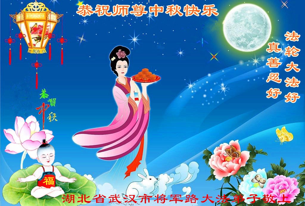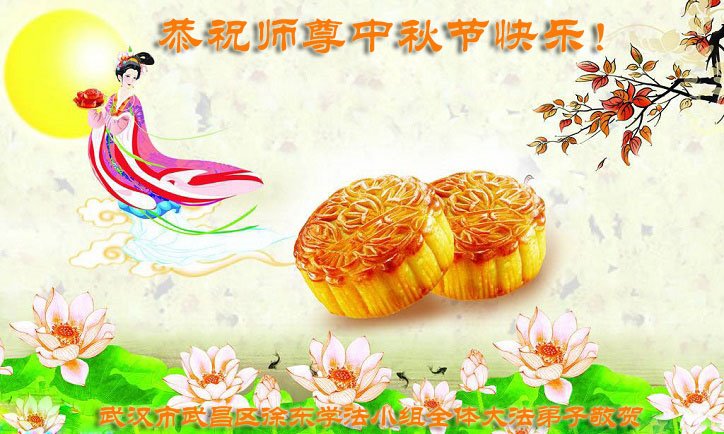 湖北省武汉市武昌区徐东学法小组全体大法弟子恭祝师尊中秋节快乐! 湖北省武汉市将军路大法弟子恭祝师尊中秋快乐!