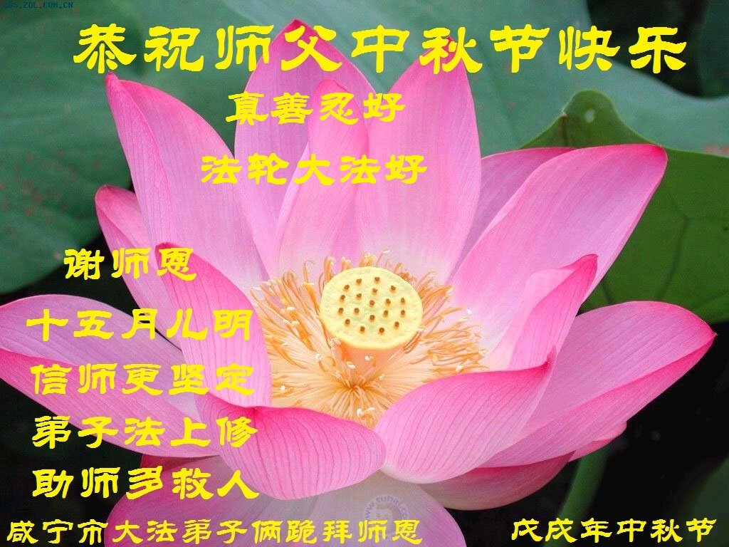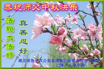 弟子们无不感恩师尊的慈悲救度,听师尊的话,多多学法,多多救人,做好三件事,兑现誓约,勇猛精進,形成整体,早日结束迫害。喜迎师尊早日回家! 武汉市硚口区全体大法弟子敬贺 湖北省荆州市公安县肉食行业明真相世人恭祝师父中秋快乐!