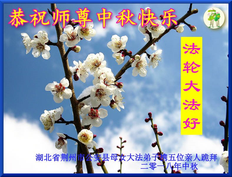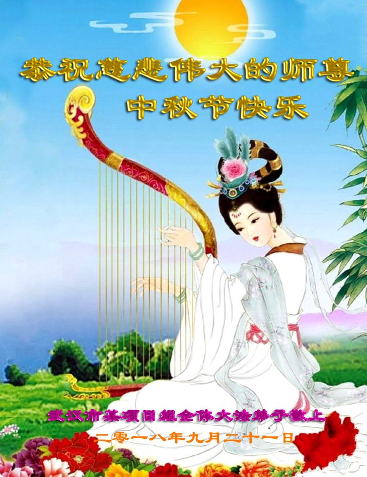 湖北省武汉市大法弟子恭祝师尊中秋快乐! 二零一八年中秋 湖北省武汉市武昌区全体大法弟子恭祝师尊中秋快乐!