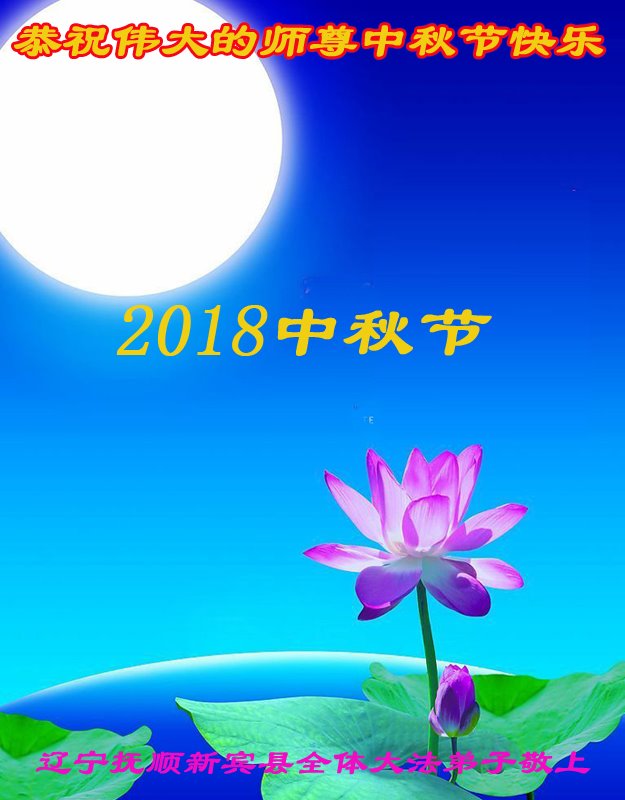 【明慧网二零一八年九月二十四日】 辽宁抚顺新宾县全体大法弟子恭祝伟大的师尊中秋节快乐!