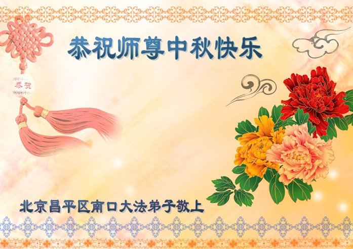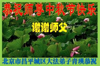 北京市海淀区、朝阳区大法弟子恭祝慈悲伟大的师尊中秋快乐!非常感谢师尊二十年来的慈悲呵护!想念师尊!
