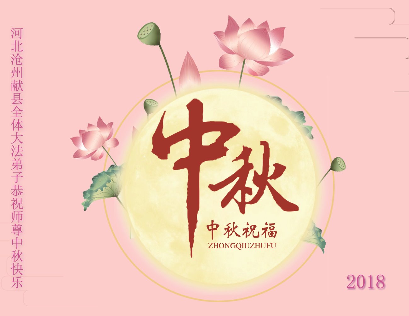【明慧网二零一八年九月二十四日】 河北省沧州市任丘市大法弟子恭祝师尊中秋快乐!
