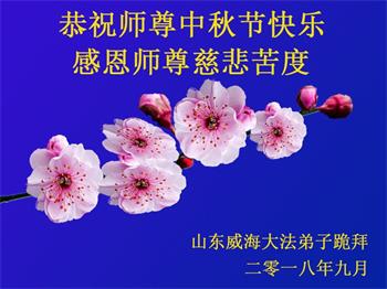 山东省威海市石岛大鱼岛二十位大法弟子恭祝慈悲伟大的师尊中秋节快乐! 二零一八年九月十九日 山东省烟台市栖霞市全体大法弟子恭祝师尊中秋快乐!