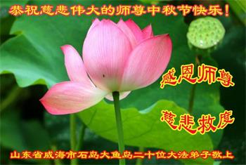 山东省威海市石岛大鱼岛二十位大法弟子恭祝慈悲伟大的师尊中秋节快乐!