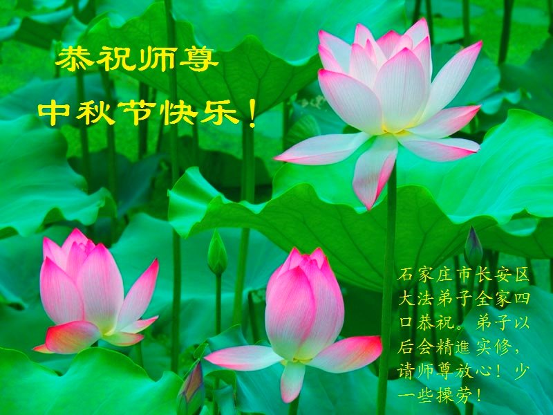 石家庄一大法弟子叩拜师尊!感恩师尊慈悲苦度!弟子唯有精進以报师恩! 河北省石家庄三人学法小组大法弟子恭祝师父中秋快乐!
