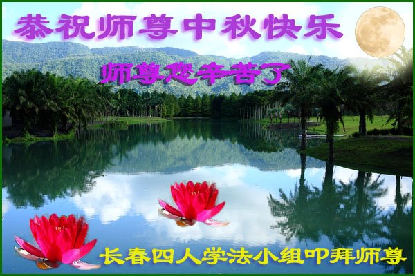 长春四人学法小组大法弟子叩拜师尊:恭祝慈悲伟大的师尊中秋快乐!师尊您辛苦了! 二零一八年九月二十日 吉林省长春四人学法小组大法弟子恭祝师尊中秋快乐!