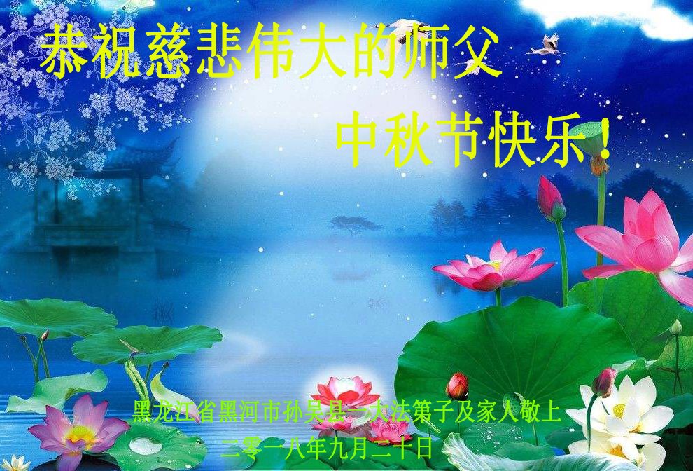 【明慧网二零一八年九月二十四日】 黑龙江省双鸭山父子大法弟子恭祝师尊中秋节快乐!