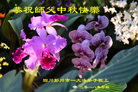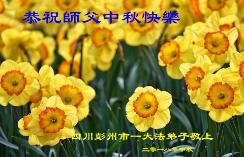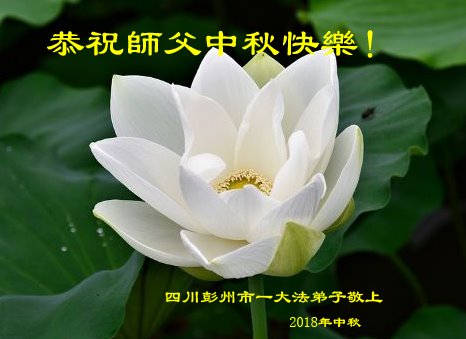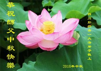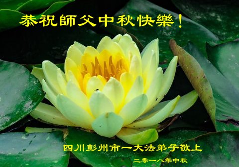 【明慧网二零一八年九月二十四日】 四川省成都市彭州市一大法弟子恭祝师父中秋快乐!