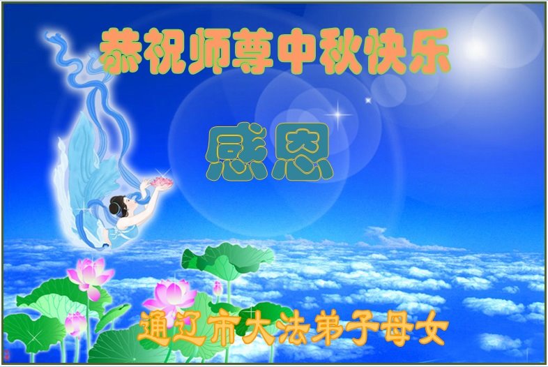 内蒙古通辽市大法弟子母女恭祝师尊中秋快乐!