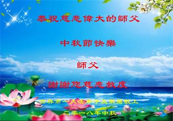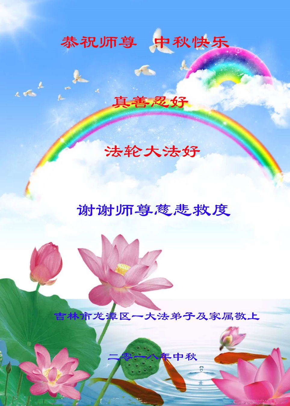 吉林市大法弟子 2018年9月22日 吉林省吉林市蛟河市大法弟子恭祝慈悲伟大的师尊中秋节快乐!弟子感谢师尊的救度!弟子叩拜师尊!