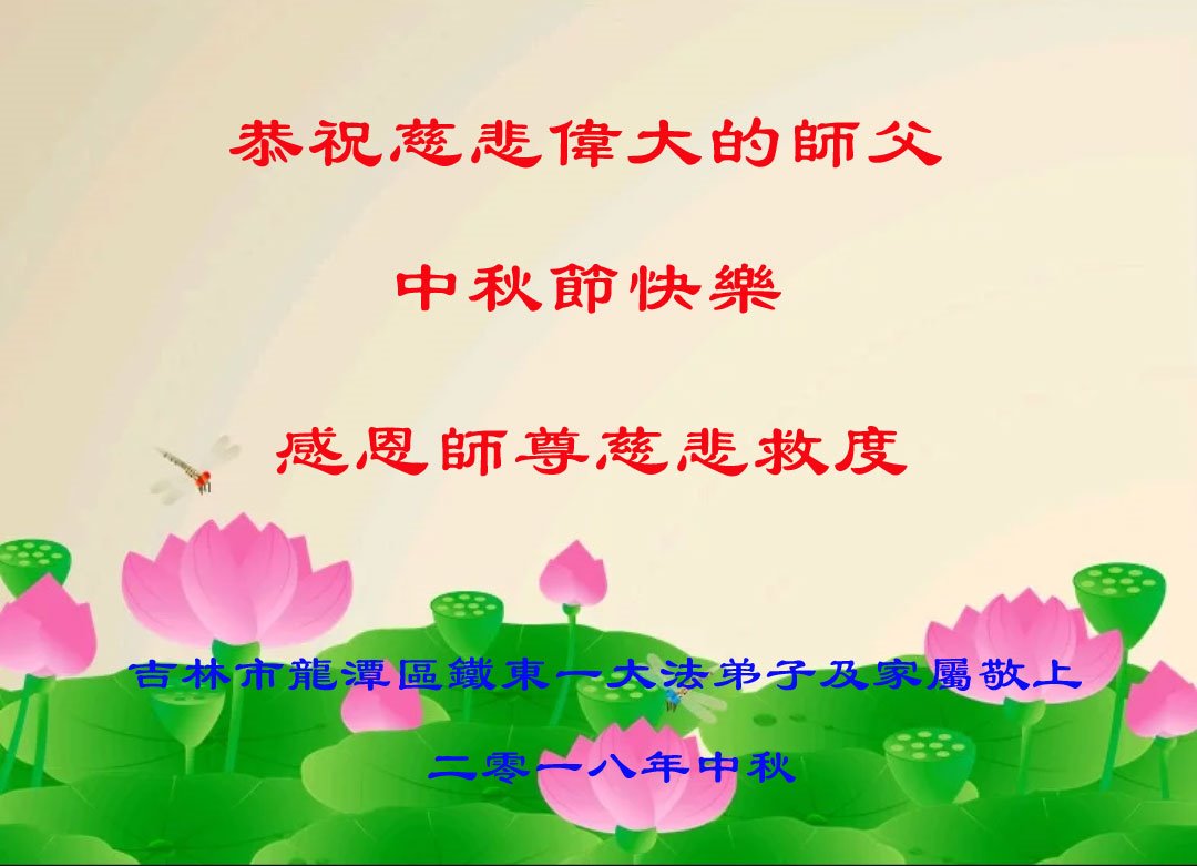 吉林市龙潭区铁东一大法弟子及家属恭祝慈悲伟大的师父中秋节快乐!