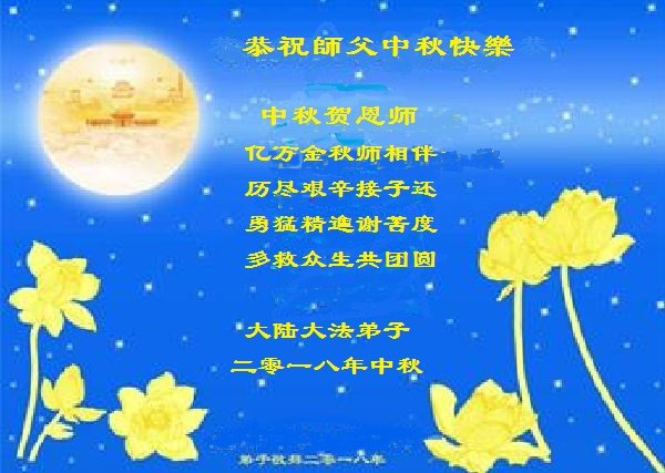 【明慧网二零一八年九月二十四日】 黑龙江省大庆市大法弟子恭祝师尊中秋快乐!