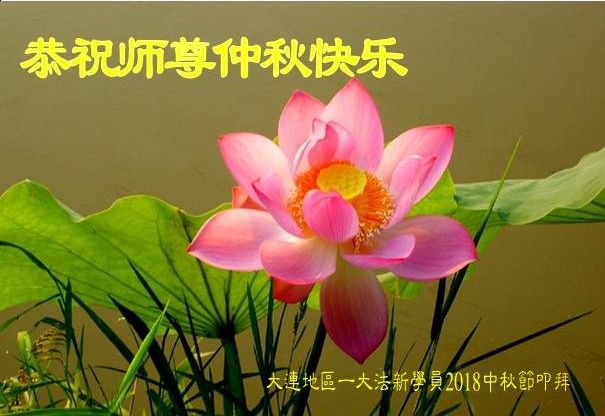 尊敬的师父:我是新学员,刚得法才两年,通过通读大法我如梦初醒,明白了大法不但祛病健身有奇效,还教人按真、善、忍做一个好人,并且要做到:打不还手,骂不还口,做事先为别人着想。这在物欲横流的当今,对社会、对国家都是有百利而无一害的。大法的洪传,我有幸成为大法弟子,感到无比的荣耀。 在中秋佳节到来之际,感谢师父的慈悲救度!恭祝师父中秋快乐! 辽宁省大连一新弟子恭祝师尊中秋节快乐!