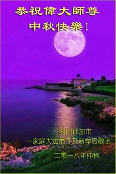 四川省德阳市什邡市一家庭大法弟子及大法新学员恭祝师尊中秋快乐!