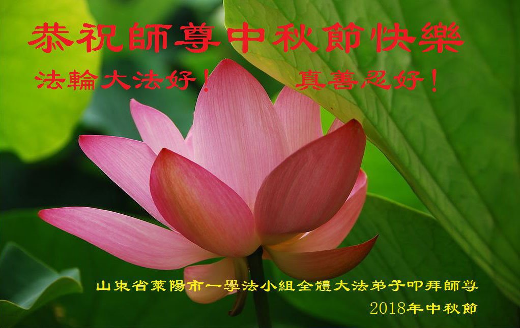 感谢师尊二十几年来对弟子及家人的慈悲保护,几次救了我们一家三口的命,法轮大法好!谢谢师尊!您辛苦了! 二零一八年九月二十二日 山东省大法弟子恭祝慈悲伟大的师尊中秋好!