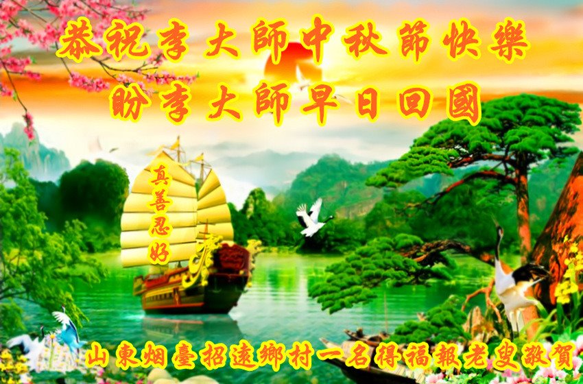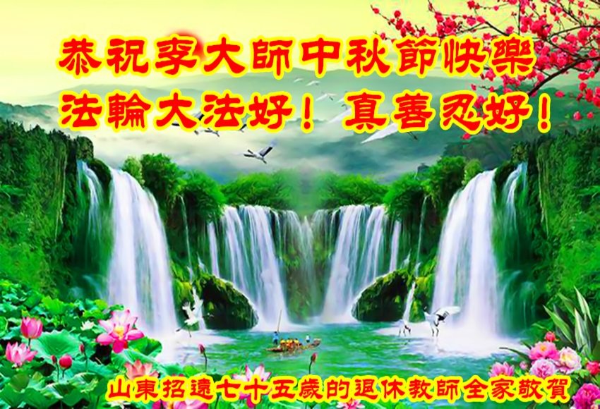 感谢您的慈悲苦度! 我们全家牢记:“法轮大法好,真善忍好”,真正按“真善忍”的标准要求自己做个好人。 山东烟台招远市高三学生恭祝慈悲伟大的李大师中秋节快乐!