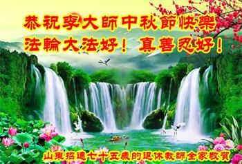 山东烟台招远七十五岁的退休教师全家恭祝伟大的李大师中秋节快乐!
