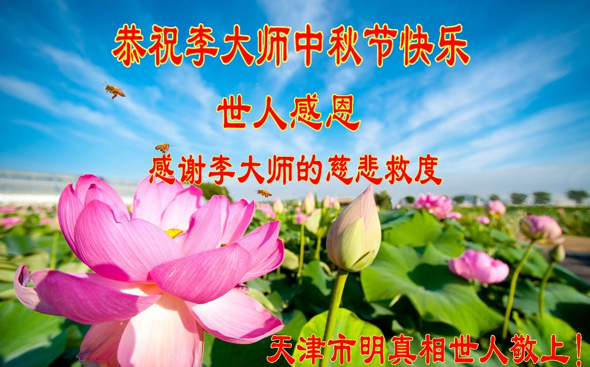 一小区物业工人让代他们向李大师问好! 谢谢师父对众生的慈悲救度! 天津市宁河区大法弟子家属恭祝李大师中秋节快乐!