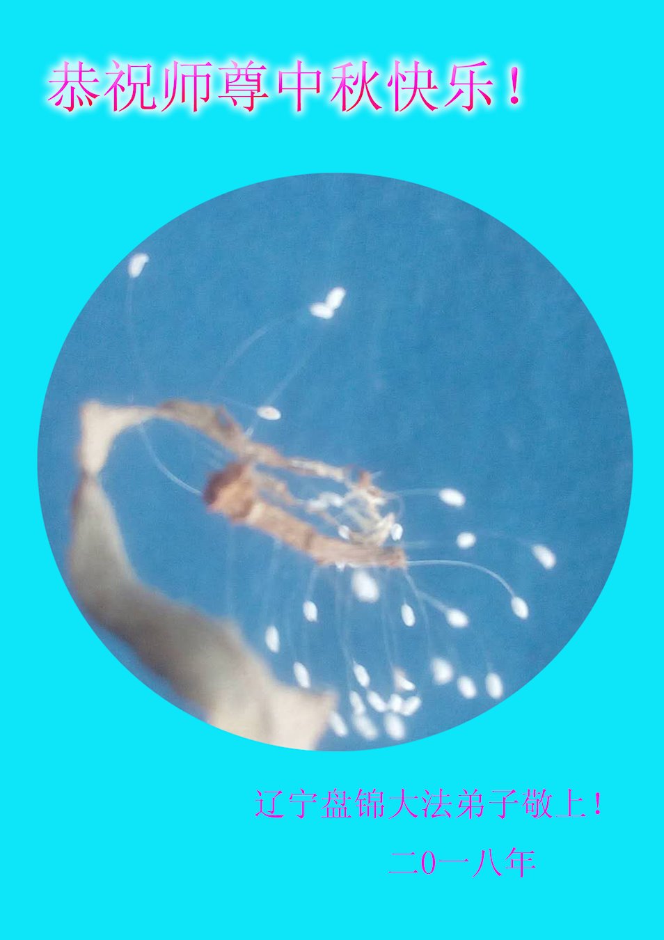 【明慧网二零一八年九月二十四日】 辽宁省盘锦市一大法弟子恭祝师尊中秋快乐!