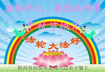 陕西省西安北二环一学法小组大法弟子恭祝慈悲伟大的师尊中秋节快乐!