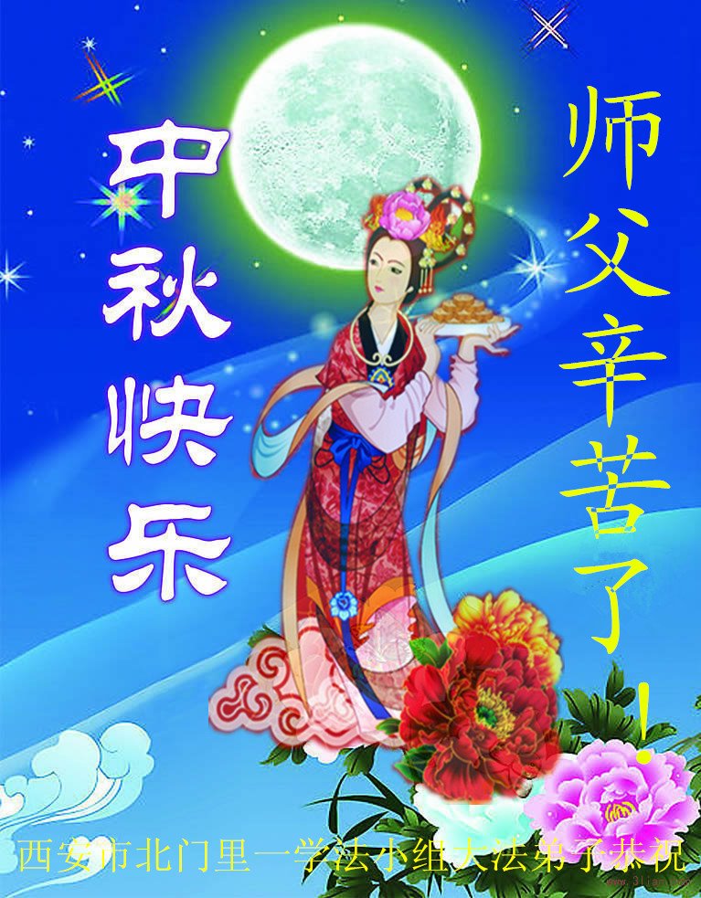 师父辛苦了 中秋节快乐! 西安市北门里一学法小组大法弟子恭祝 陕西省西安北郊三个学法小组大法弟子恭祝师尊中秋节快乐!