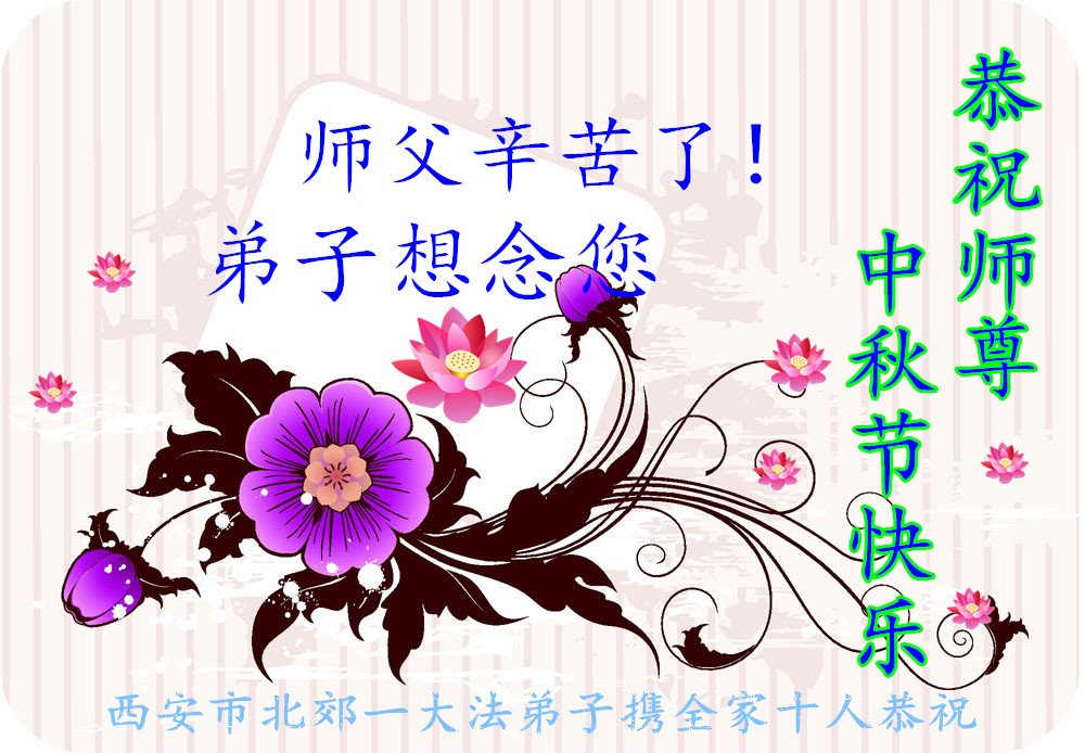 恭祝师尊中秋节快乐! 师父辛苦了!弟子想念您 西安市北郊一大法弟子携全家十人恭祝 陕西省西安西郊一大法弟子代表五位家人恭祝师尊中秋节快乐!