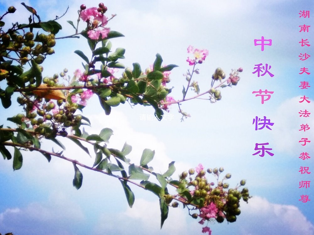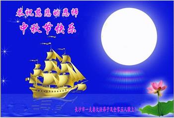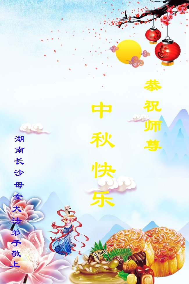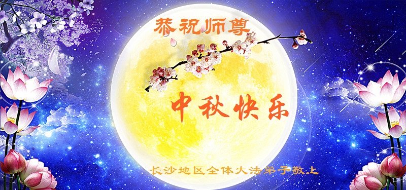 中秋佳节,弟子们想念师父!盼望师父早日回中国大陆。弟子们感恩师尊慈悲救度,我们一定努力做好三件事,不辜负师恩。 湖南长沙大法弟子恭祝师尊中秋节快乐!