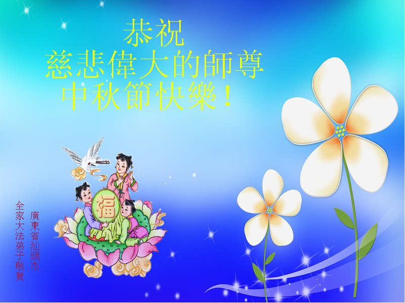 广东省汕头市全家大法弟子恭祝慈悲伟大的师尊中秋节快乐!