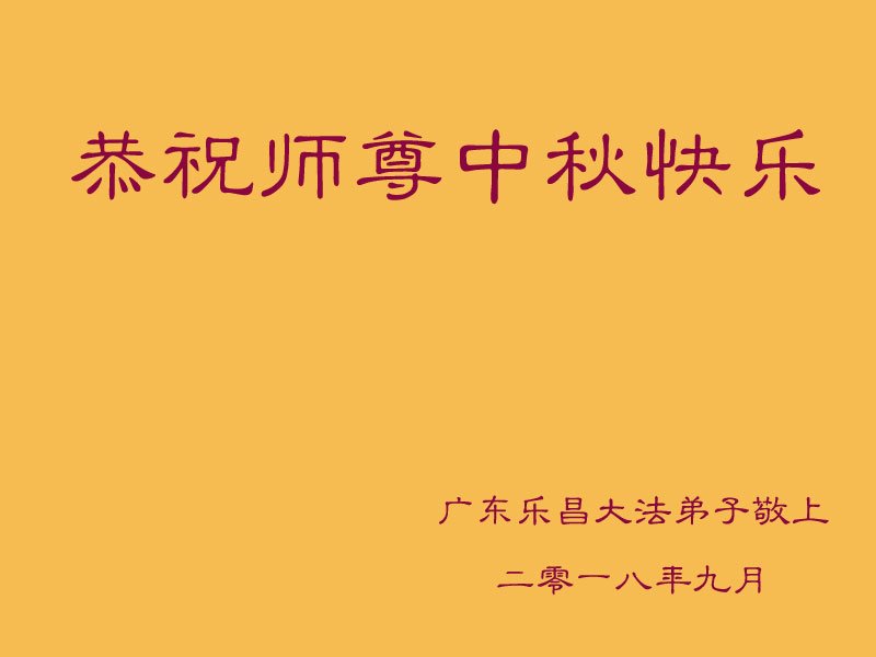 每当佳节倍思亲。在中国传统佳节——中秋节即将到来之际,我们学法小组全体大法弟子更加想念师尊,盼望师尊早日回来。 在修炼的道路上,我们更加珍惜师尊开创的修炼环境,也更加清楚自身的责任重大,助师正法,救度众生是我们义不容辞的责任。请师尊放心,我们一定会按师尊的要求去实修勇猛精進,珍惜最后不多的修炼时间,努力做好三件事,不辜负师尊的慈悲救度。 广东省韶关市乐昌市大法弟子恭祝师尊中秋快乐!