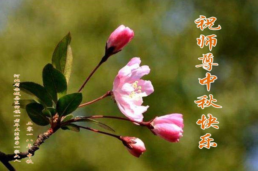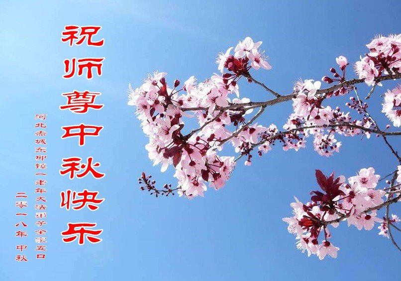 祝贺师父中秋快乐!我们共同提高,做合格的弟子! 河北省张家口市赤城县样田镇一老年夫妇大法弟子恭祝师父中秋节快乐!