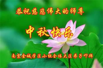 法轮大法好!恭祝师父中秋节快乐! 江苏常州一对夫妻大法弟子 2018年9月22日 江苏省南京金城学法小组全体大法弟子恭祝慈悲伟大的师尊中秋快乐!