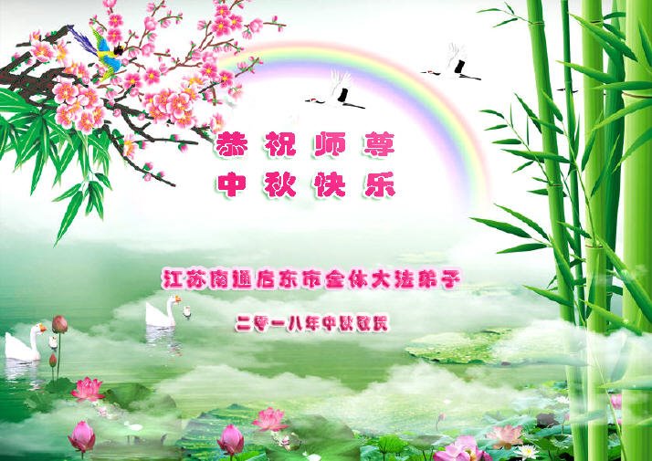 弟子会做好三件事,不辜负师父的良苦用心。弟子三叩首谢谢师父的慈悲苦度! 江苏南通启东市全体大法弟子恭祝师尊中秋快乐!