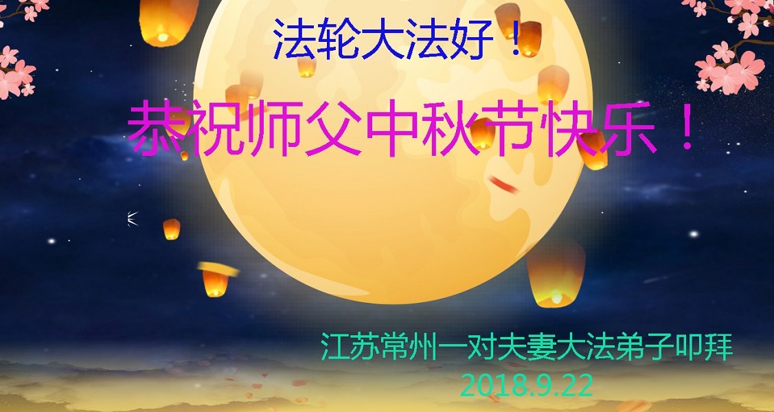 在慈悲师父的呵护下,我们学法小组全体弟子一定学好法、多学法,努力在法上提高认识,做好三件事,跟随师父回家! 叩拜师父救度之恩!谢师尊! 常州地区一学法小组全体大法弟子恭祝师父中秋节快乐! 江苏常州一对夫妻大法弟子恭祝师父中秋节快乐!