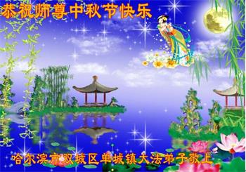黑龙江省哈尔滨市双城区单城镇全体大法弟子恭祝师尊中秋节快乐! 黑龙江省哈尔滨市双城区单城镇大法弟子及家人恭祝慈悲伟大的师尊中秋节快乐!