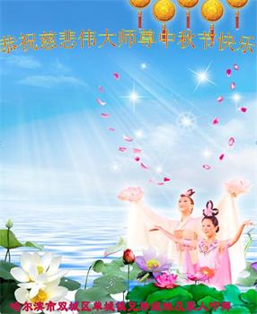 黑龙江省哈尔滨市道里区全体大法弟子恭祝慈悲伟大的师尊中秋节快乐!