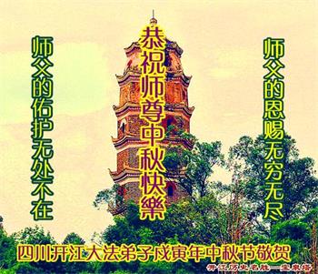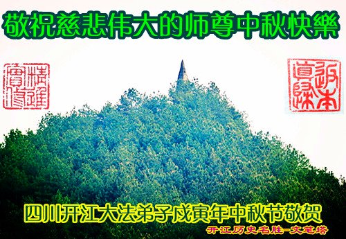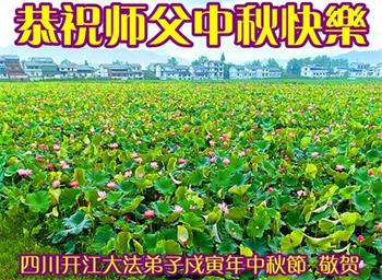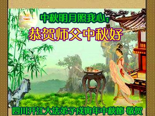 四川省乐山市五通桥全体大法弟子恭祝慈悲伟大的师尊中秋节快乐! 合十 四川省遂宁市射洪县一大法弟子祝师父中秋快乐!