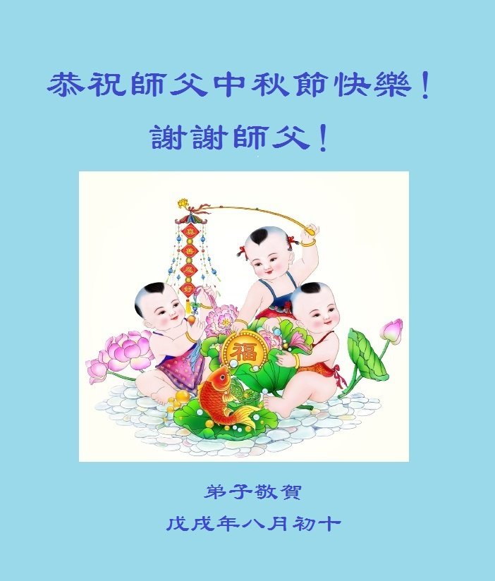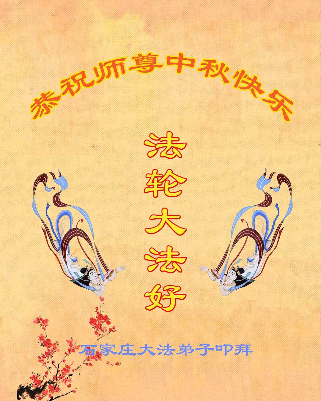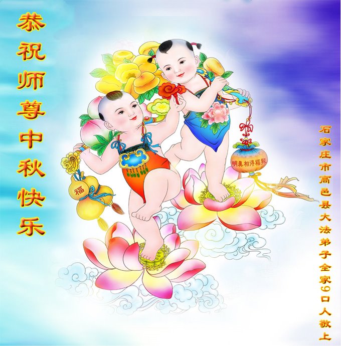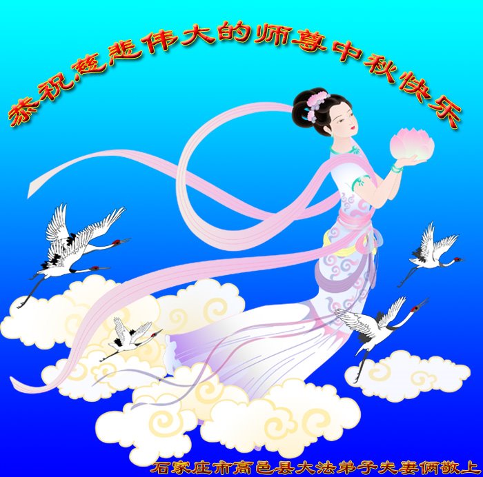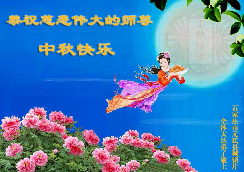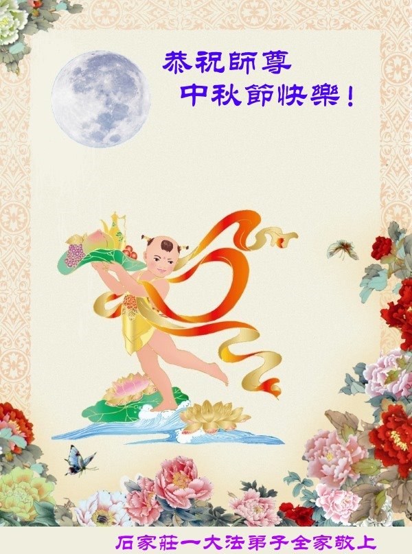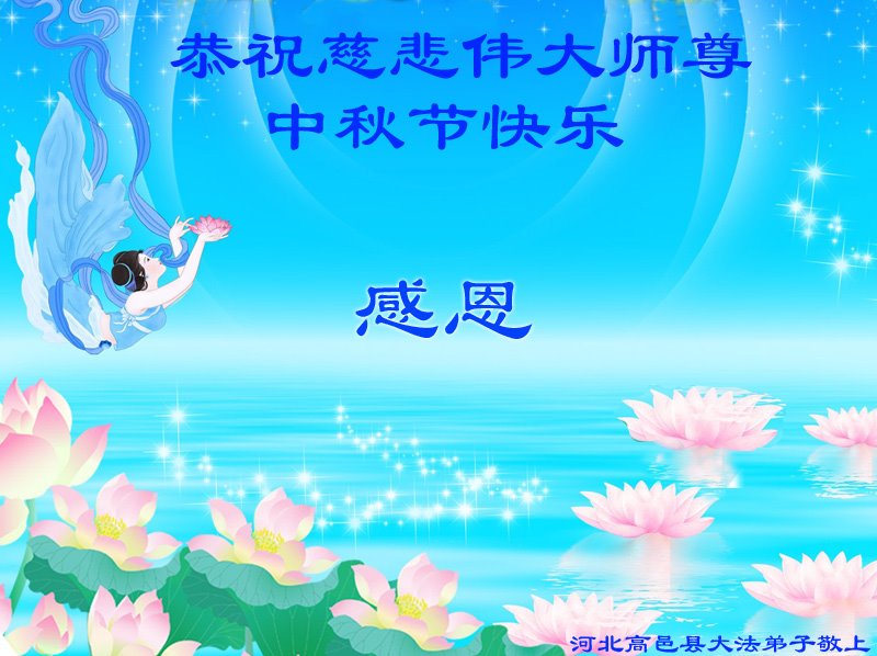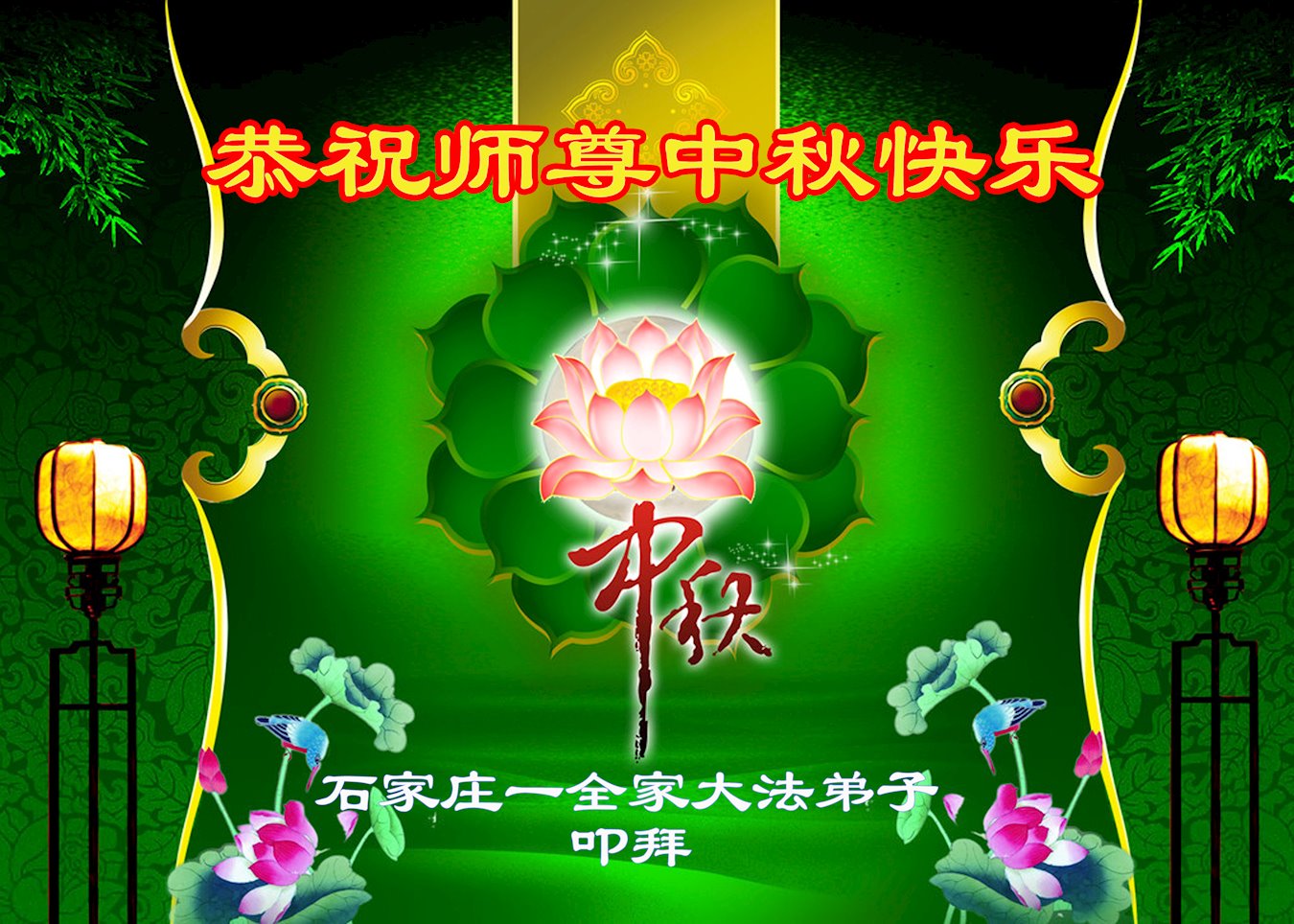 师尊救我出苦海 师尊指我回家路 师尊慈悲救众生 师尊洪恩语难诉 三件事中把己正 从中修执无一漏 助师正法世间行 一路走来好幸福 河北石家庄市一大法弟子恭祝师父中秋节快乐!