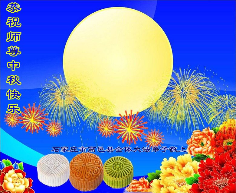 中秋佳节思恩师 跪谢师尊苦救度 十九岁月迫害狂 危难之中师呵护 完成使命救众生 历尽魔难志不移 三件事中修自己 唯有精進报师恩 河北省石家庄市高邑县一学法小组大法弟子恭祝慈悲伟大的师尊中秋节快乐!