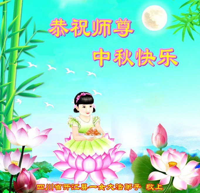 四川绵阳一大法弟子暨全家恭祝师尊中秋快乐!