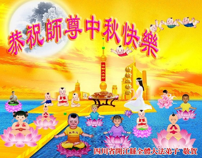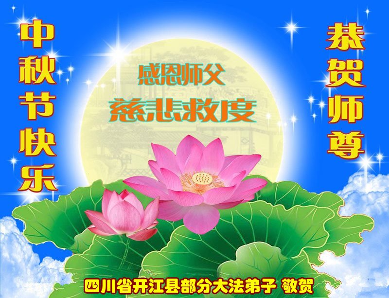 阳高秋爽节日临 每逢佳节倍思亲 不能亲身见师尊 师在心中有法伴 无言以表法徒心 为感师尊慈悲度 祝师节日多欣慰 为让师尊少操心 理解宽容配合好 包容才是慈悲心 有师有法真是好 实际行动报师恩 努力做好三件事 精進实修多救人 共同提高了大愿 跟随师尊回家园 四川省达州市开江县大法弟子恭祝师尊中秋快乐!