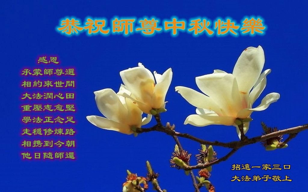 淄博市大法弟子叩拜师尊:感恩慈悲伟大的师尊苦心救度! 山东东营一家祖孙三代大法弟子恭祝师尊中秋快乐!