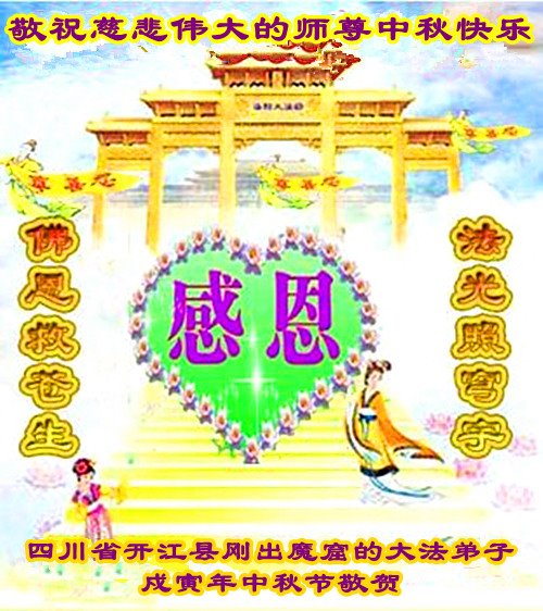 谢谢师尊的救度;弟子一定要兑现誓约;完成使命;跟师父回家; 四川省遂宁一大法弟子及家人恭祝慈悲伟大的师尊中秋节快乐!