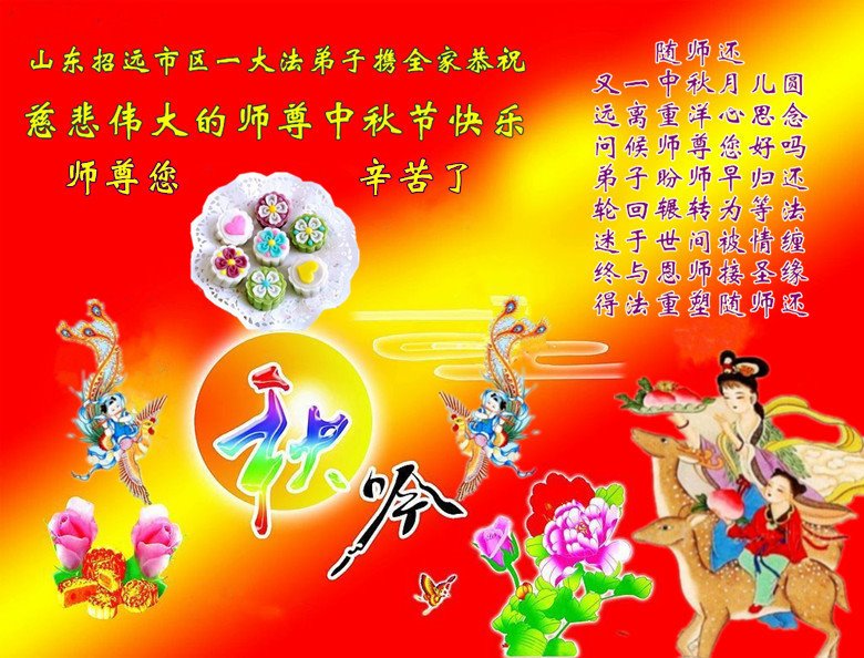 山东滕州市大法弟子:恭祝伟大的师尊中秋节快乐! 辽宁新宾全体大法弟子恭祝师尊中秋快乐!